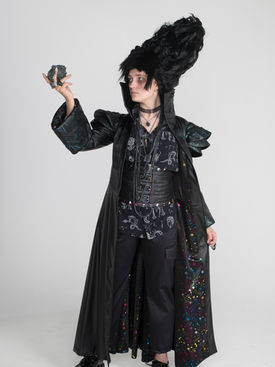 Inspired by the poem The Raven, by Edgar Allan Poe, this costume was designed with the purpose of creating a dreamlike world, without a moment or specific place, just like a memory. It consists of two parts: a tailcoat, that represents the talking raven from the poem, and a dress, that represents the lady for whom the narrator calls during the poem and his long lost love, Lenore.